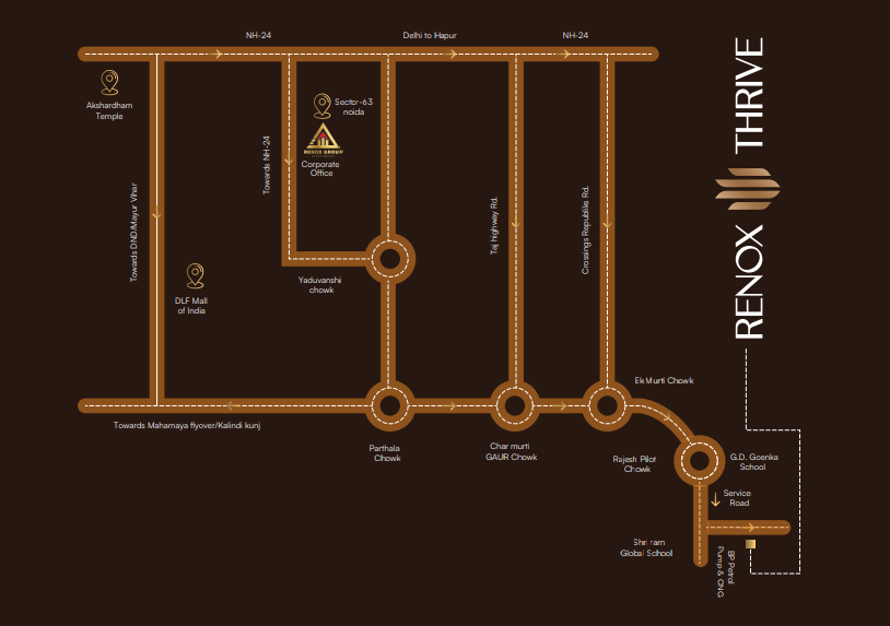Nestled in the heart of Sector-10, Greater Noida West, Renox Thrive offers a luxurious living experience with world-class amenities and seamless connectivity to key hubs across the National Capital Region (NCR). Whether you’re looking for a serene home environment or proximity to bustling urban centers, Renox Thrive provides the perfect blend of both.Renox Thrive offers exceptional 3 BHK flats in Noida Extension, distinguished by its three-sided open layout, providing panoramic views, abundant natural light, and excellent ventilation. Indulge in luxury living with thoughtfully designed apartments featuring private balconies or patios, premium branded fixtures, and a modern modular kitchen. Built in accordance with Vastu principles, Renox ensures a harmonious flow of positive energy and wellbeing in every home. This ultra-luxury project is ideal for both homeowners and investors, combining high-end amenities with a strategic location that offers the perfect blend of comfort and connectivity